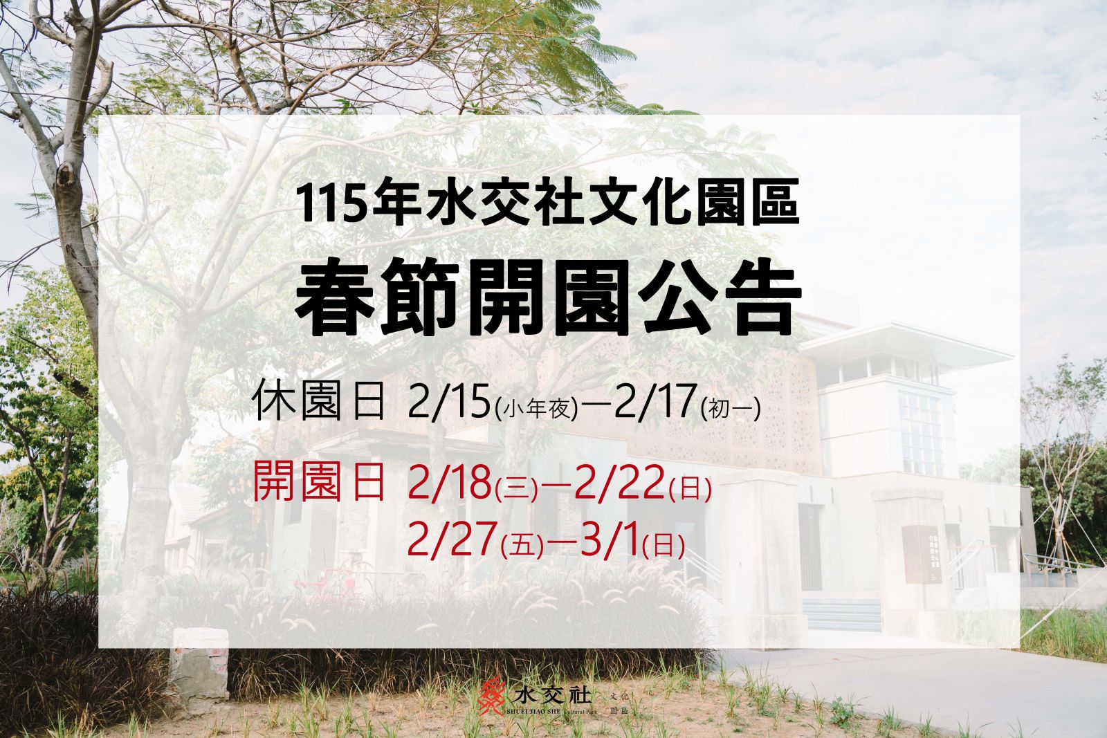 休園日:2/15(週日,小年夜)、2/16(週一,除夕)、2/17(週二,初一)